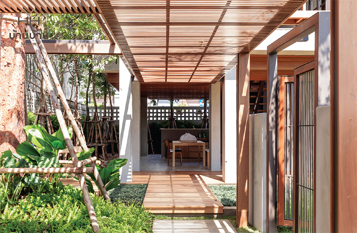 ผ่านเข้าบ้านได้ดี ขณะที่ยังคงความเป็นส่วนตัวได้ด้วย ลักษณะคล้ายกับนอกชานบ้าน การออกแบบพื้นที่ลักษณะนี้ช่วยให้ใช้งานได้